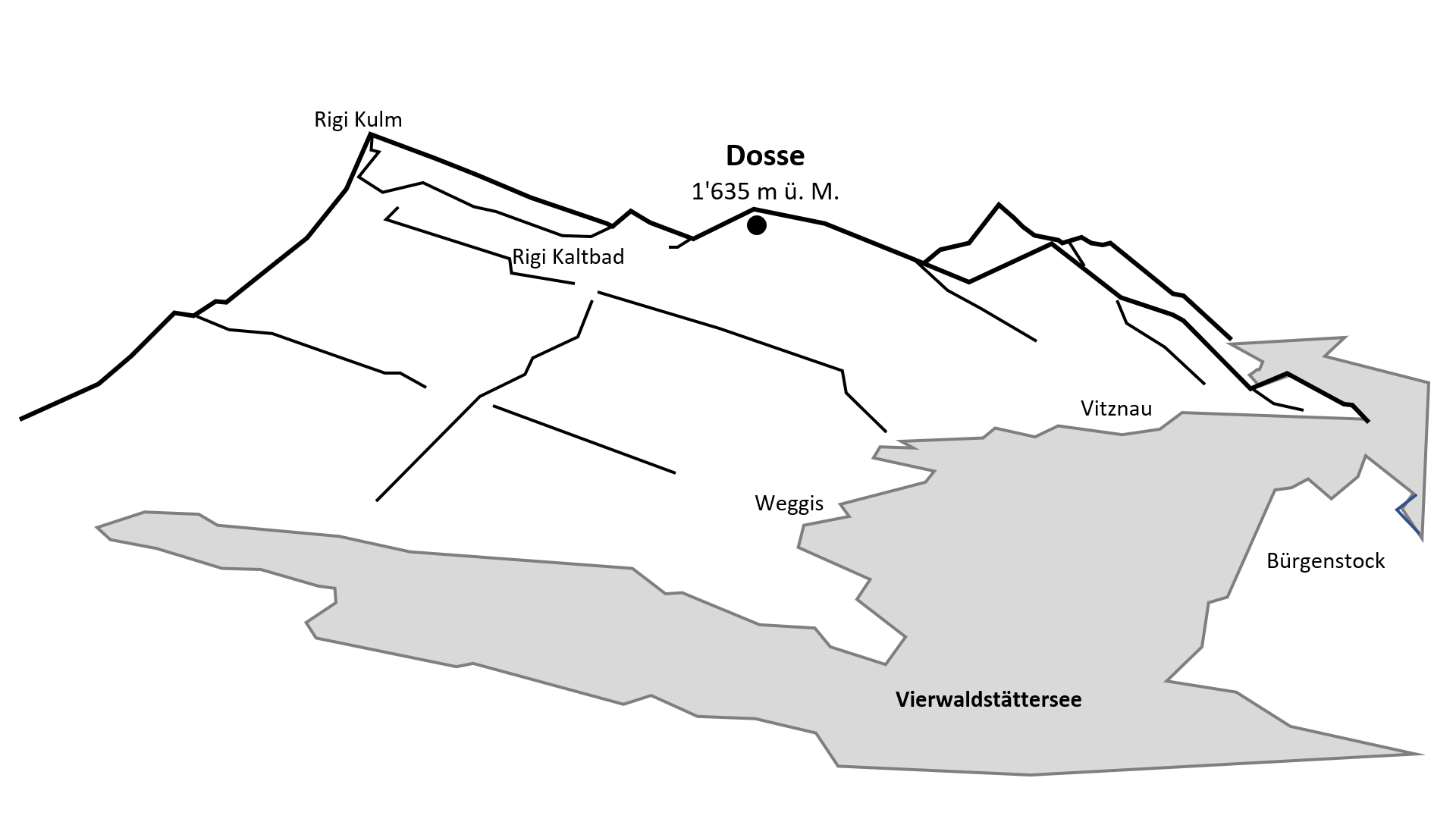 Namensgeber für den Kartenhalter ist der Berggipfel «Dosse» des Rigi-Massives. Ein wenig abseits der Touristenströme, steiler Aufstieg, dieser wird aber mit einer phänomenalen Aussicht entschädigt. Geeignet auch als Ziel für Schneeschuhtouren.